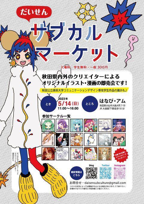 祝!開催! だいせんサブカルマーケット (@daisen_subcul) 5/14(日) 大仙市 はなび・アムにて 個人サークル(運営おてつだい兼)でこちらに参加させていただきます! #だいせんサブカルマーケット #夜空ほむら