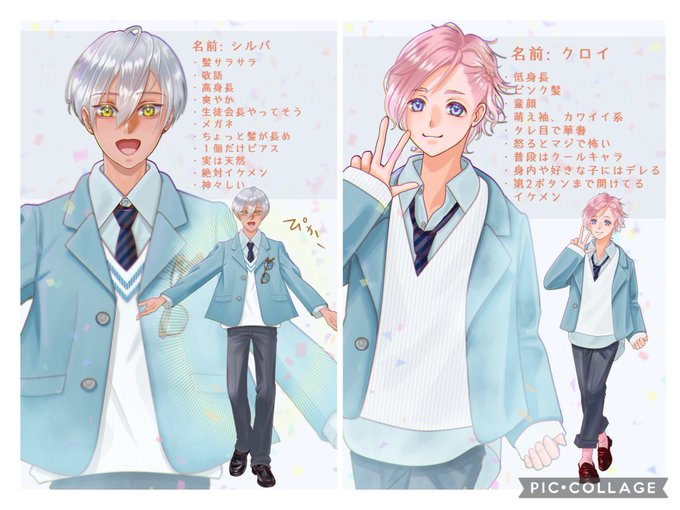 アネモネちゃんがうちのDKたちとコラボして描いてくれたのでお返し描きました!ありがとう〜!!! 背景力尽きたから説明すると、アネくんところの文化祭に遊びに来た記念写真って設定です😆 https://t.co/RLdbIT72th