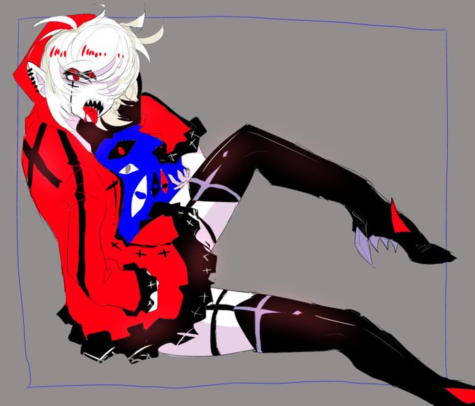 #創作クラスタさんに白髪赤目の隈がひどいギザっ歯というお題でキャラデザして欲しい 全てが性癖