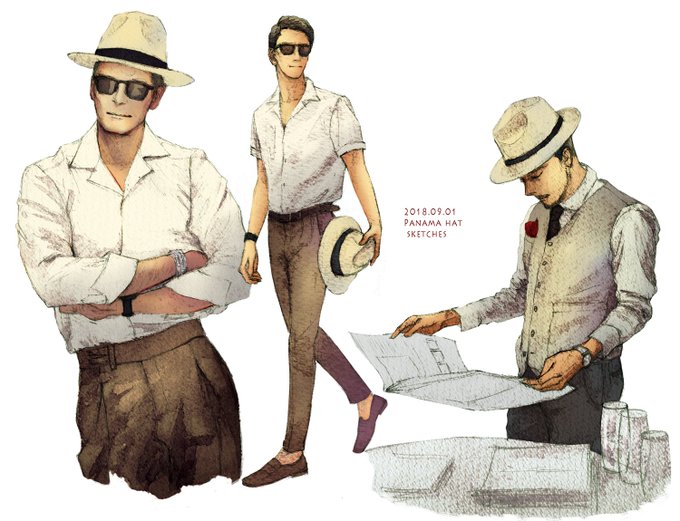 今日のスケッチーオジサンは夏、パナマ帽被るといいと思う