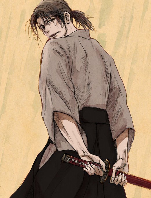 お題:【もみあげ】【刀】 #おじさん版深夜の真剣お絵描き60分一本勝負 髭でもみあげのインパクトが薄れてしまったかな~😅