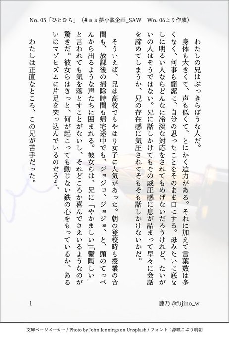 #ョョ夢小説企画_SAW に投稿した、院生🌟と妹のお話です🙌(3/9) ※🌟の妹である夢主名は「なまえ」となっています。 #ジoジoプラス #ョョプラス #jogio夢 タグつけさせていただきます。