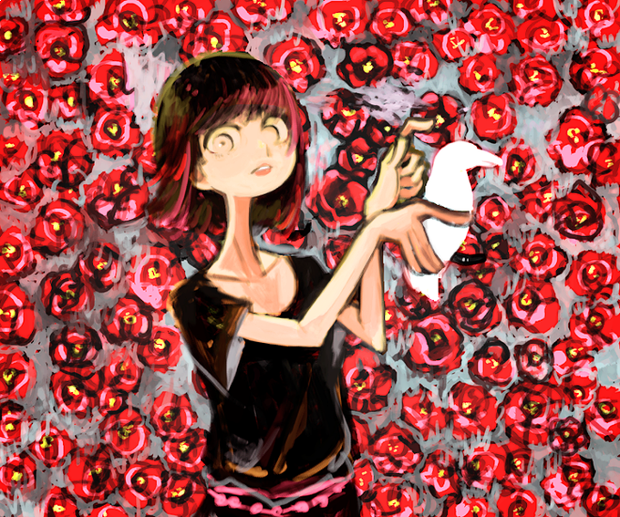 烏が黒くて、椿が赤くて