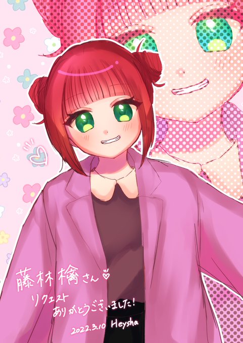 ピンクと赤を基調にしてるとことかアホ毛の感じとかつや感ある髪の毛ちゅるんとした緑の眼とかetc藤林檎への理解と愛が深いイラストとてもうれしい…🥰❣️
