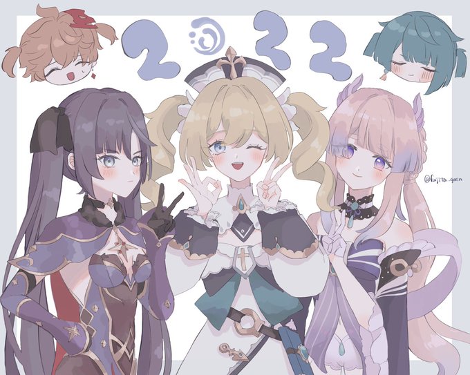 書き初めはツインテ水元素✨💙🤍✨ #genshinlmpact #原神 #tartaglia #Xingqiu #Mona #Barbara #kokomi