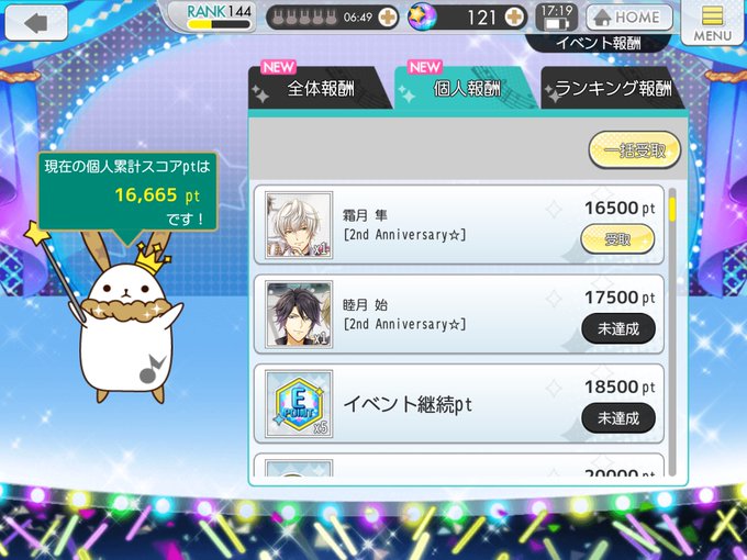 ジュエル全部溶かしたけど最初の段階で陽が来て続けて隼様🌸 嬉しいんだけど、確率渋すぎよね…それとイベカード以外のptの渋さがシンドいよね今回(;ω;) 期間短い上にこれはどうかなって思うよ? #ツキパラ2周年