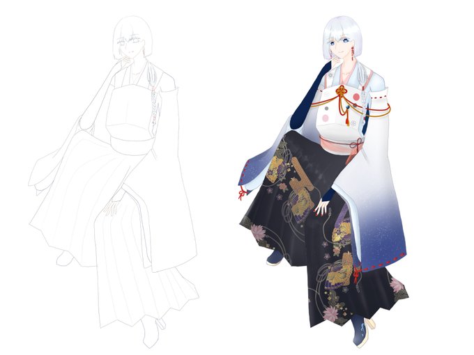 #皆さん線画と塗った後を見せてください こうやって見ると線めっちゃ薄いな