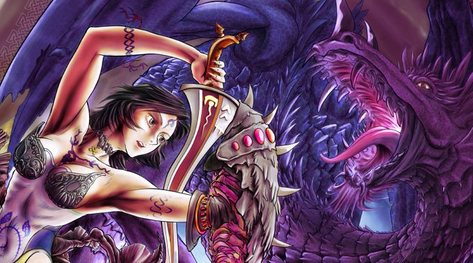 久々にカラーを描いた。 ドラゴンと女戦士 PIXIVにUP:https://t.co/erDgVfFhcS