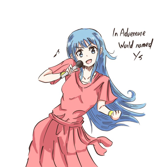 ご先祖さまの武器片手に生きのびてたサラさん。片手で水晶玉割る程度の怪力。 #YS #イース