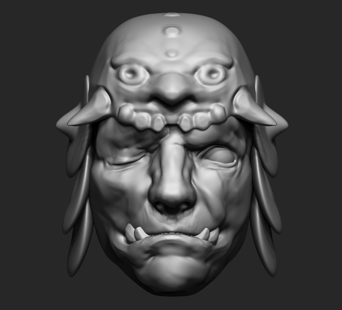 Today was the first class of the character creation course I joined (Eight months duration). Not to much sculpted, only improved a little this orc samurai, what a timing to start a relation, a course and a work hahaha.