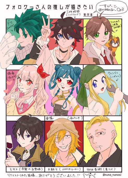 #フォロワーさんの推しが描きたい リプくださった皆様、ありがとうございました!!! 普段自分では描かないようなキャラを描けて楽しかったです^^