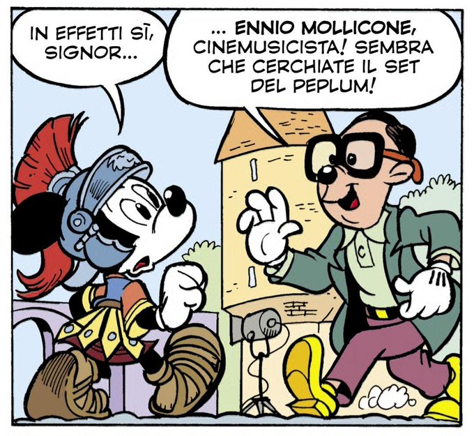Oggi se n'è andato il maestro Ennio Morricone e lo salutiamo ricordando quella volta in cui ha (quasi) incontrato Topolino. Dalla storia "Topolino e il peplvm contrastato", su Topolino 3254.