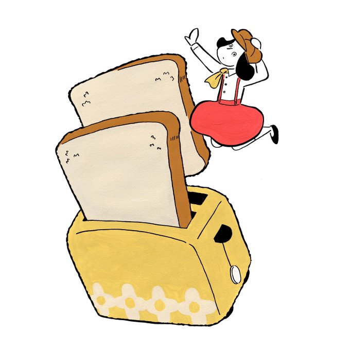 トースター #illustration #fumiishiwata #illustrator #painting #drawing #art #design #sketchbook #girl #graphicdesign #イラスト #イラストレーター #イラスト好きな人と繋がりたい #アート #人物イラスト #絵 #レトロ #トースト #パン #食べ物イラスト #女の子 #昭和 #挿絵 #絵 #иллюстрация