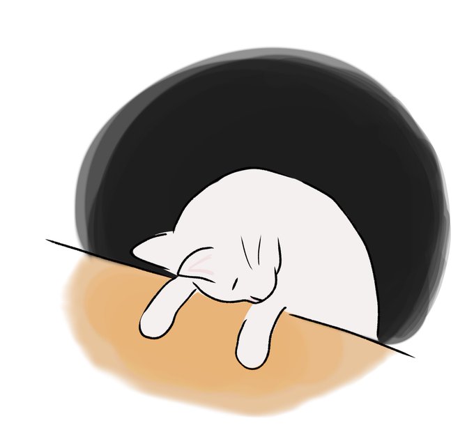 オーバーワークからの寝落ち。 安請け合いはしちゃいけない。大変でも後輩を育てなければ。面倒だからっていいよやっとくよって言ったら最後。 #ラクガキ #イラスト #動物イラスト #猫 #ねこ