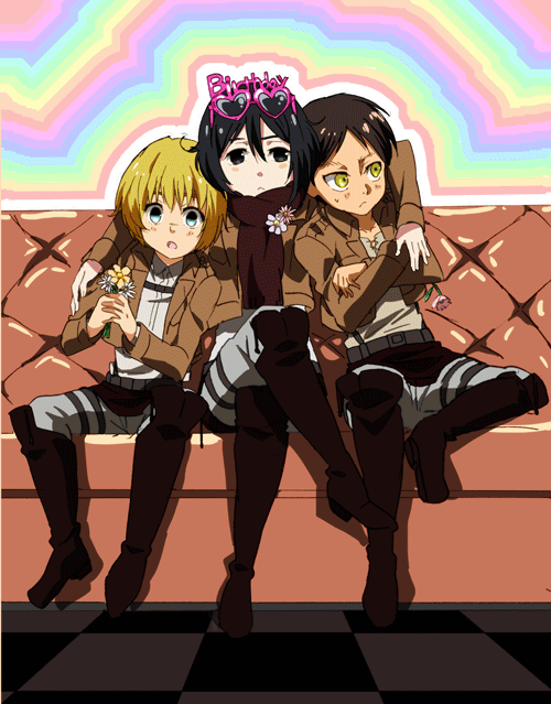 ミカサ誕生日おめ!強くてかっこいい君には逆ハー…いや、ハーレムだ!エレアルに挟まれるがいい!#ミカサ生誕祭2015