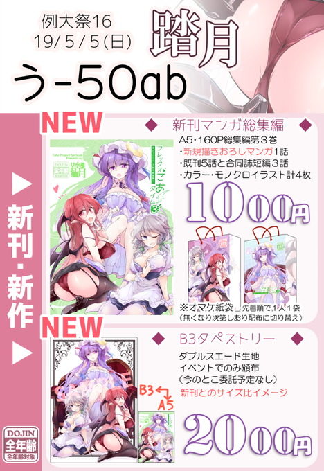 う50ab踏月、表紙絵加筆したタペストリーも会場頒布。