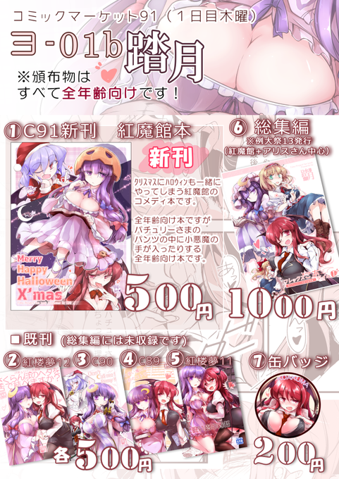 無事原稿終われば新刊は紅魔館でクリスマスにハロウィンする全年齢向けコメディ本です!若干勢い余ってパンツの中に手が入ったりするかもですが全年齢だいたいパチュこあメインです。 #C91 #東方