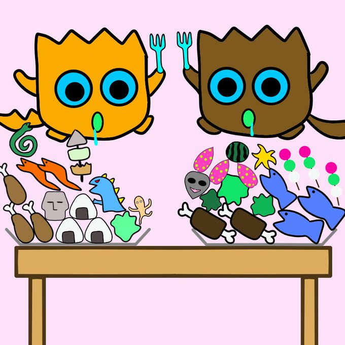 ☆モグラスの冒険☆ モグラス「どれにしようかな〜♪」 モグボス「片っ端から取って行こうか♪」 鳥人「2人ともヨダレが垂れてるよ♪」 モグラス「う、う、美味そう過ぎてヨダレが…」 モグボス「いっその事お皿ごと持って行こうかな♪」 鳥人「お皿ごと持って行っちゃダメだよ〜♪」