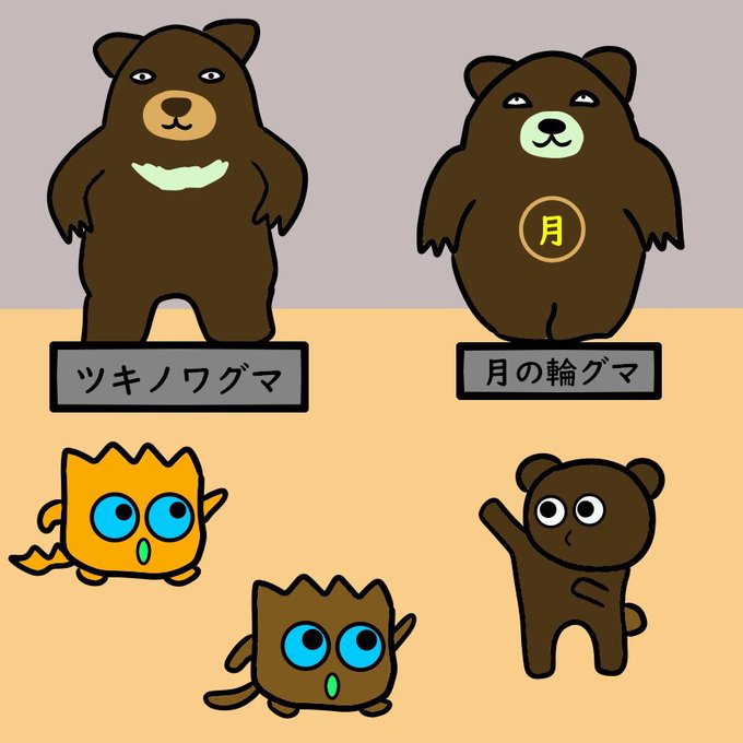 ☆モグラスの冒険☆ モグラス「どひゃ〜!凄く大きなクマだねぇ」 熊人「数年前に捕獲されたツキノワグマだよ♪」 モグボス「あっちのは… ん〜?月の周りに輪……」 熊人「アレはかなりの希少種、月の輪グマだよ♪」 モグラス「確かに見た事無いかも…」 モグボス「胴体に漢字があるって…」