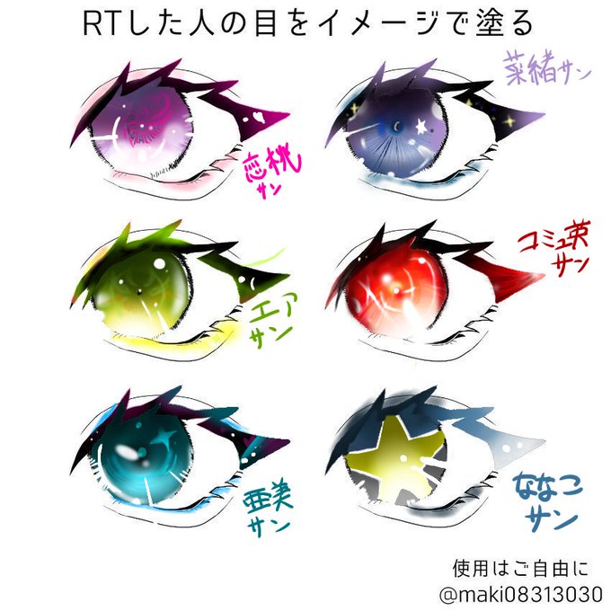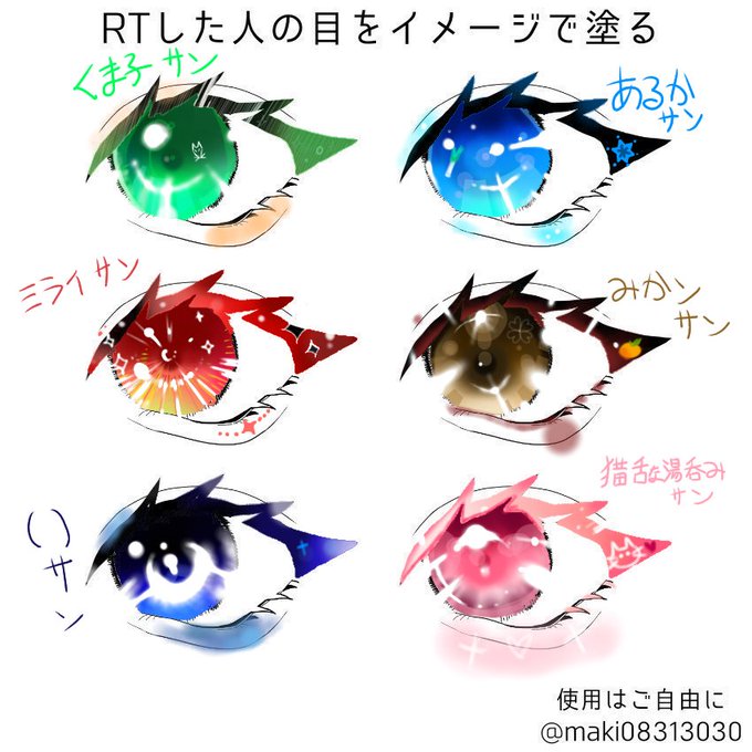 #RTした人の目をイメージで塗る まず6名さま完成~!