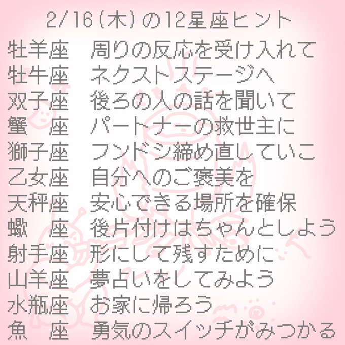 2/16(木) 今日は夕方から渇きを潤してまとめていく感じ。状況整理。しっとり肌へ。 良い一日を♡ #運勢 #占い #開運