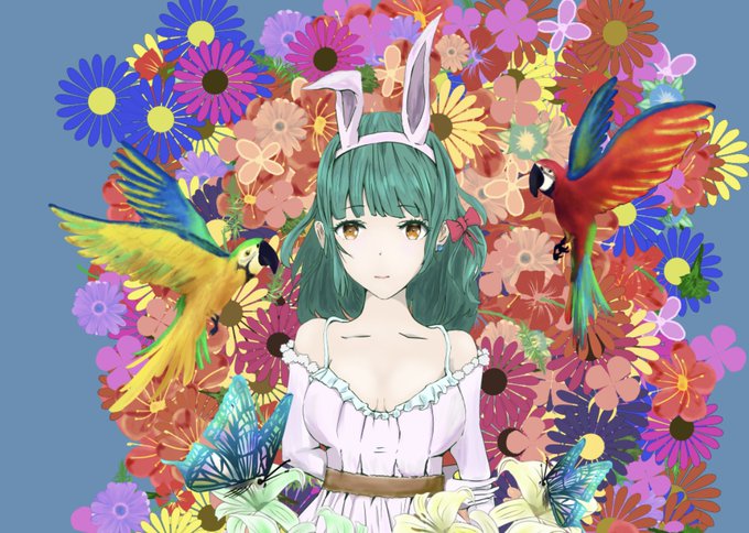 題名「うさちゃん」 花に囲まれた女の子のイラスト! #絵描きさんと繋がりたい #イラスト好きな人と繋がりたい #オリキャラ