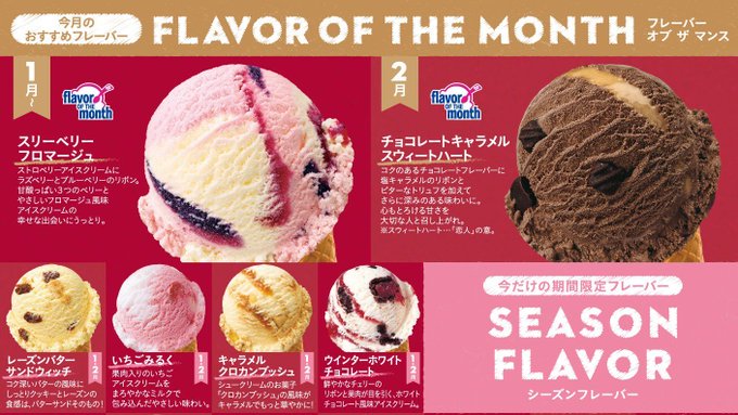 美弥ちゃんショックで眠れない夜をお過ごしのBADDY愛好者の皆さま、ねえ、もうご存知? 2月のサーティワン限定フレーバー 🍨チョコレートキャラメル \スウィートハート/様っていうんだって…!スウィッハー💕スウィッハー♡スウィッハー💗