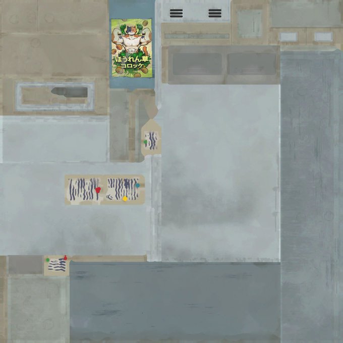 The actual file is squished in the files so I stretched it to fit the same length that it has on the textures for the building where it's shown.