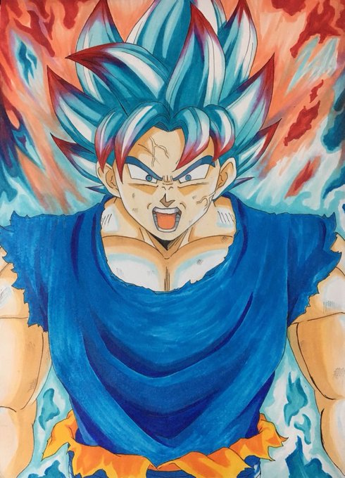 孫 悟空 完成しました。 ゴッドからブルーに変身する時の髪色の変化を自分なりに表現したくて描きました #ドラゴンボール超 #イラスト #コピック