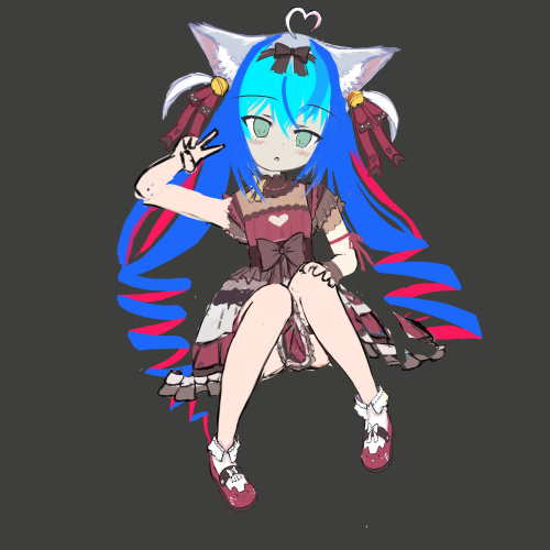 折角かわいい装飾もりだくさんだし、全部描くってなるとやっぱり立ってた方が良いし、太ももの猫ちゃんも座ってると見えないんよな