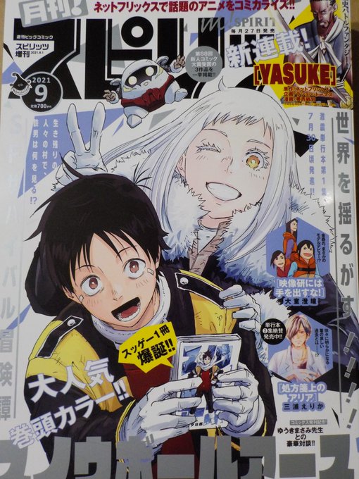 大童澄瞳「映像研には手を出すな!」最新話掲載「月刊!スピリッツ9月号」。今回はかなり異色の回なのでパラパラ探して映像研載ってないと思うかも。そして映像研はこれで連載5周年おめでとうございます。連載50周年ぐらい続きますように。 #祝映像研5周年 #7月27日には手を出すな #eizouken_anniv277