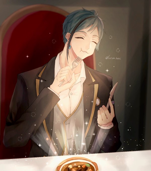 マスターシェフ審査員フロイド🍽 本当においしそうに食べてくれるの尊すぎる…!! #ツイステファンアート