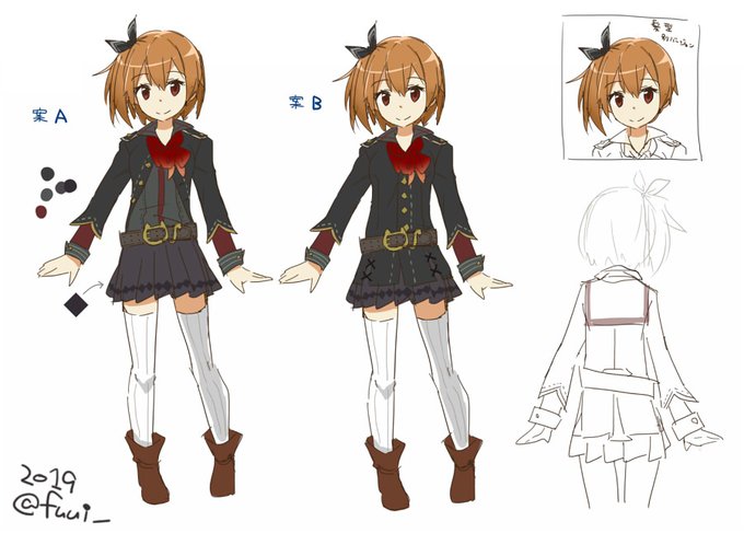 女性主人公のキャラデザインを発掘したのでペタリ。この衣装に至るまでにファンタジー世界っぽく服に謎の柄とか入れたりしたけど何故かアイドルのステージ衣装みたいになって迷走した思い出。 https://t.co/vAYGykla4b