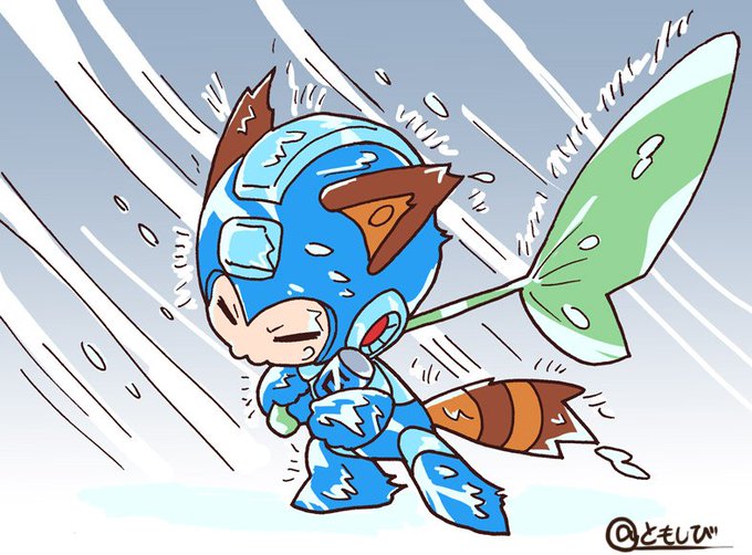 台風の日に食料を探しに行くろっきゅ。