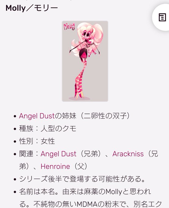 アラクネスとモリー(エンジェルの兄と双子の妹)、wikiの下のほーうにいた(笑)隅々まで見ないとなんだなー。