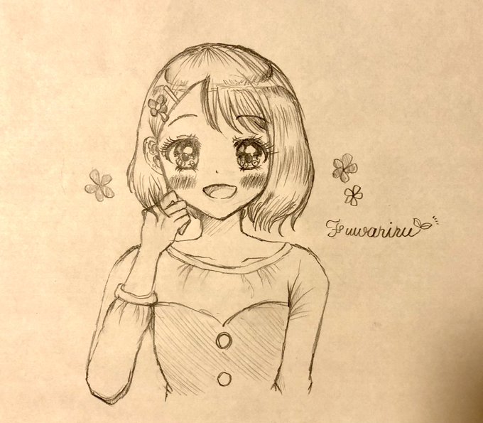 #今月描いた絵を晒そう アナログで描いた、落書きクオリティですが…!🥲💦 アナログ絵も楽しんで描きたいと思います!何よりも目に優しいので🌸