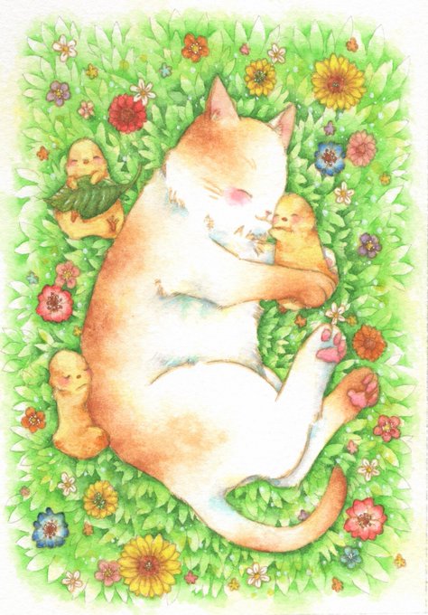 透明水彩で動物や花を描いています🌸