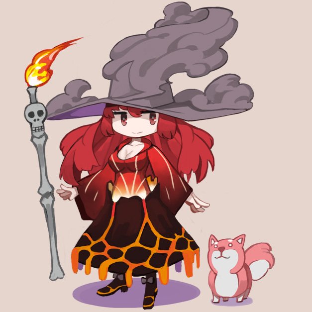 デフォルメ絵描きました。火山の魔女と使い魔のシバさん #オリジナル