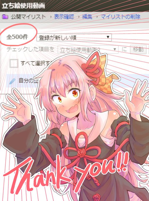 自分のボイスロイド立ち絵を使用していただいているものを集めた立ち絵使用動画のマイリスト数がMAXの500になりました!