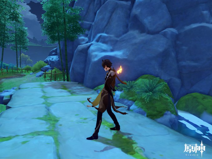 フレさんを見かけたはいいもののお声かけの口実ないなと悩むこと約30分。鍾離先生とオルモス港から河を上りスメールシティを超えた辺りまでやってきました。どこここ。