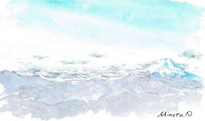 パーティ行動なので久しぶりに水筆だけで早描きを!と思っていたが、終始ガスの中で結局描けず。帰路の車窓からの日を反射する駿河湾をバックにした沼津アルプスのシルエットが嬉しかった。