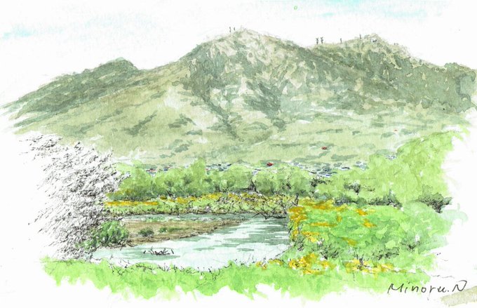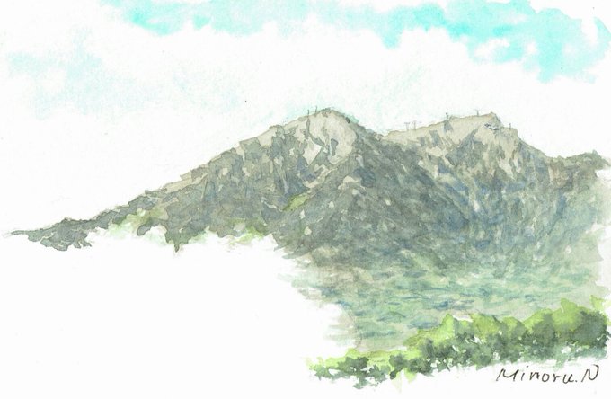 中距離での山肌は表現が難しい。どこまで描いてどこまで描かないか。