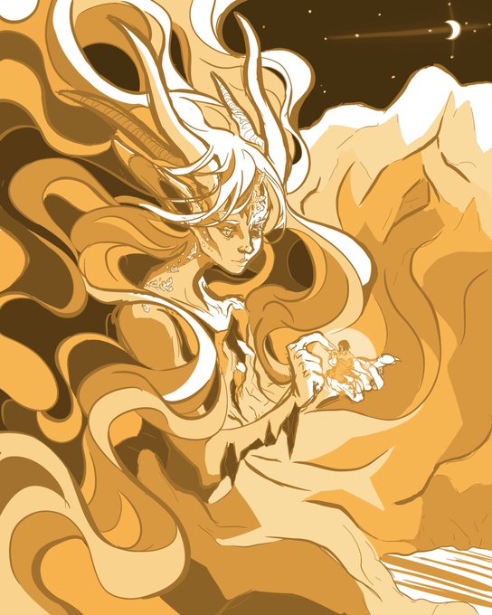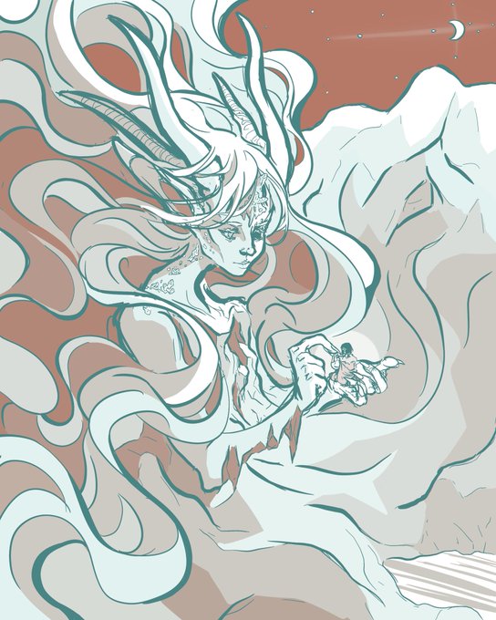 @Kyuubeeb Ok these 2 are from a book WIP, Ice Prince. White(black hair) gets fucked over by his sorta-friend prince Fuirey(grey) and has to escape a death sentence, after which he discovers his dad’s side of the family, and magic shenanigans ensue, including skulls, goats, and near deaths