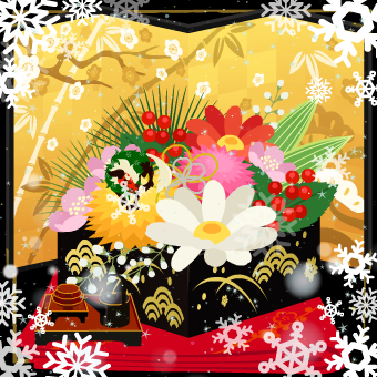 元旦だから、とゴージャスなお重を使ってのレイアウト。あ、島名が「花重箱の島」だったね、これ。