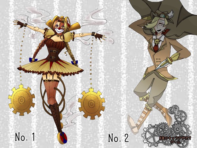 #誰のキャラデザだゲーム もやしっ子さん(@moyamoya_suru)主催の誰デザに参加させていただきましたわよ テーマは【スチームパンク衣装の悪役】、担当した立ち絵は【③】の多腕くんです リプにアンケ繋げるのでよければそちらもどうぞ😎