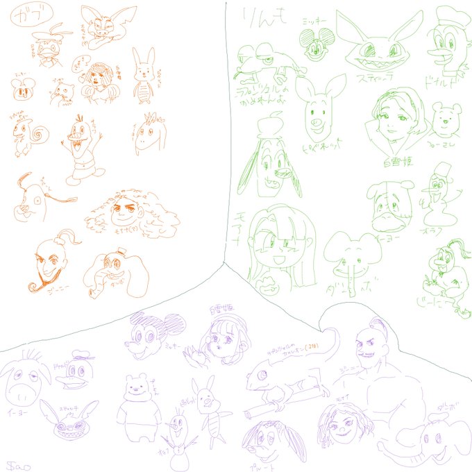 さおちゃんとりんと絵チャした。 うろおぼえディズニー(左) うろおぼえドラえもん/クレヨンしんちゃん/ちびまる子/サザエさん(右)