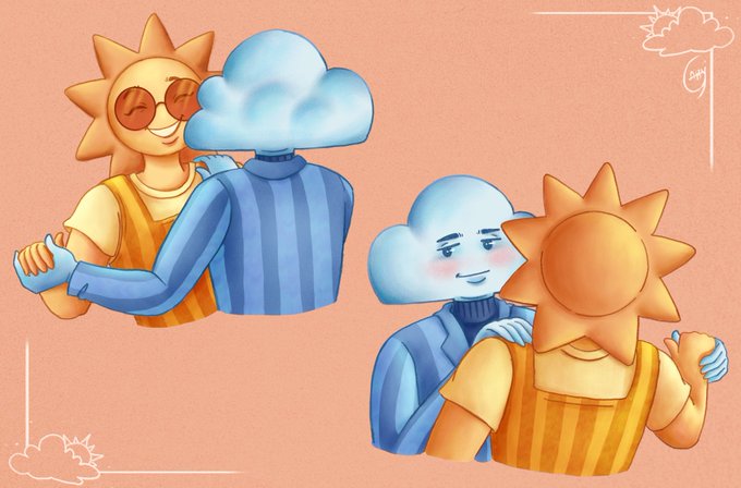 Desde que eu vi o #drawthisinyourstyle lindo da @caohart_ imaginei os dois personagens que ela criou dançando juntinhes. Então precisei desenhar essa cena 💙☀️☁️