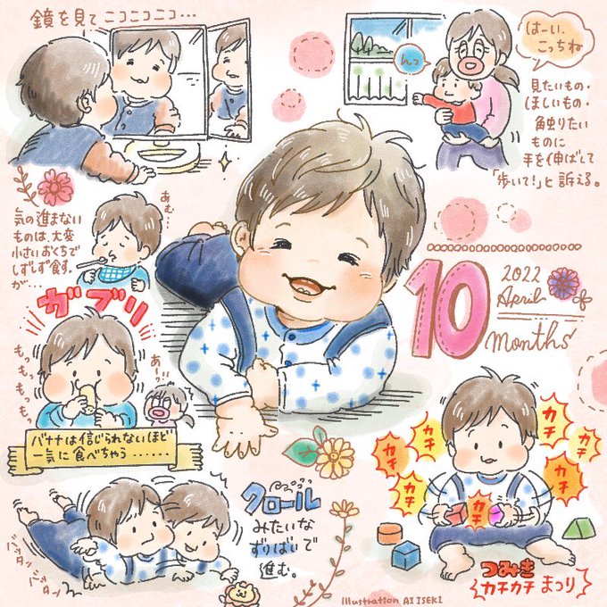 10か月になりました。このひと月は、夜泣きや分離不安も強めだったけど、その分出来ることが増えてきました。 もうすぐ一歳…はやいなあ #育児絵日記 #0歳 #10ヶ月ベビー #赤ちゃん #赤ちゃんあるある #成長記録