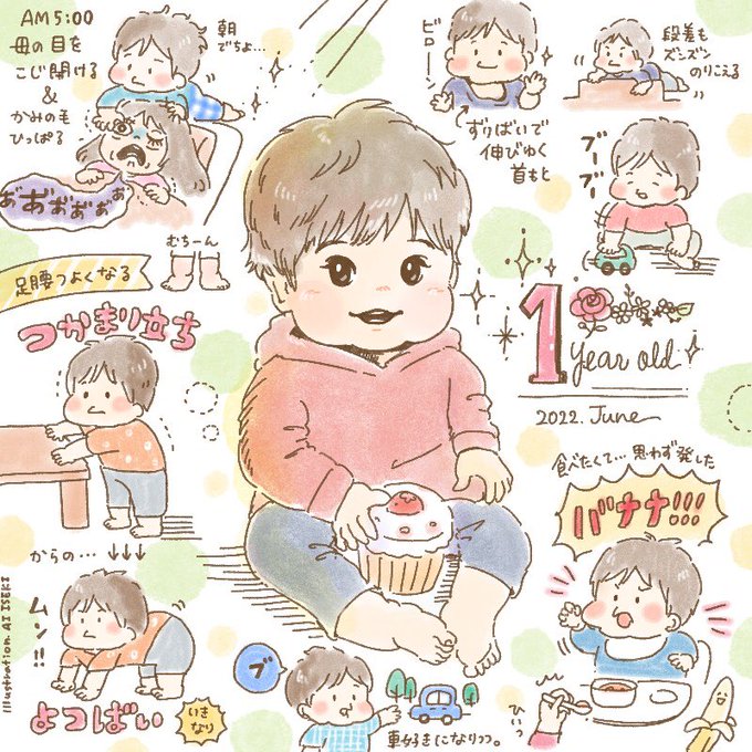 一歳になりました。 あっという間の1年。共に泣いたり笑ったり、日々一緒に成長してます。 #一歳バースデー #育児絵日記