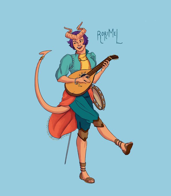 3. She's 1.70m, no muscles AT ALL (poor girl can barely hold her mandolin) with twisted horns (which she's really proud of) and fishhook-like tail. Also Rori likes wearing super colourful and comfy clothes :)